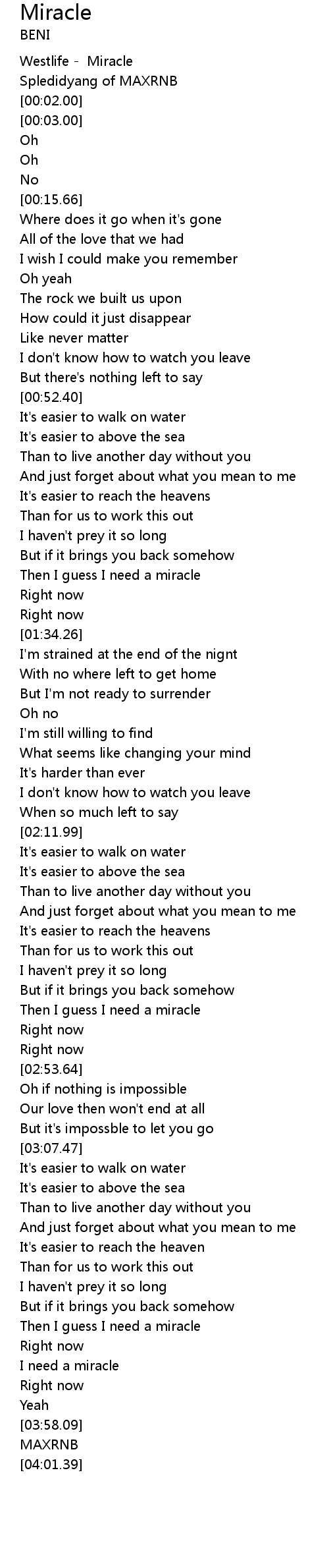| [03:45.39] | I need a miracle |
