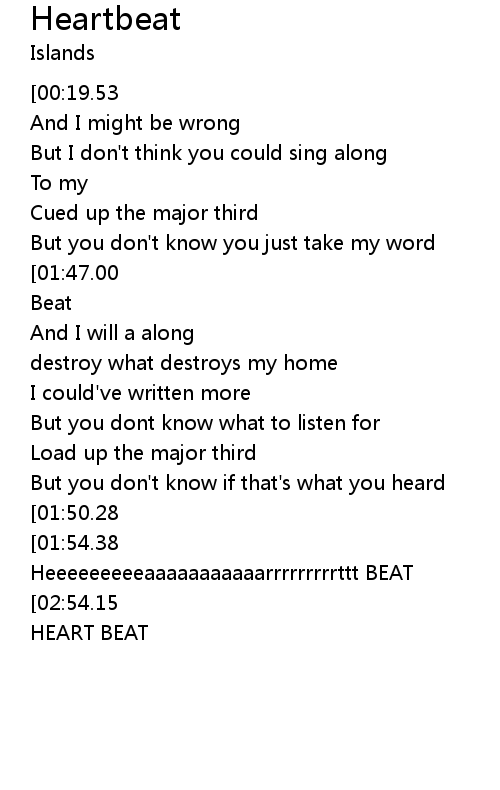 | [01:58.47][01:47.00][01:43.33][01:31.84][01:10.31][00:58.68][00:53.51][00:43.43] | Heart Beat |