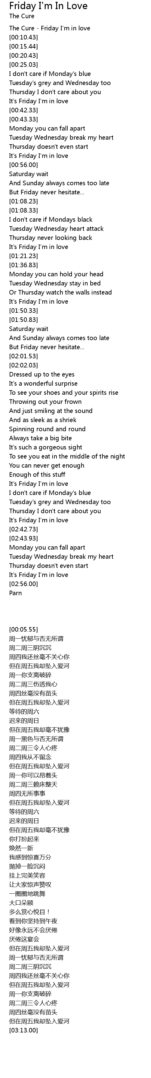 The Cure - Friday I'm in love |