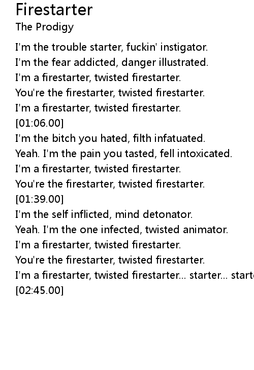 [01:01.00] I'm a firestarter, twisted firestarter.