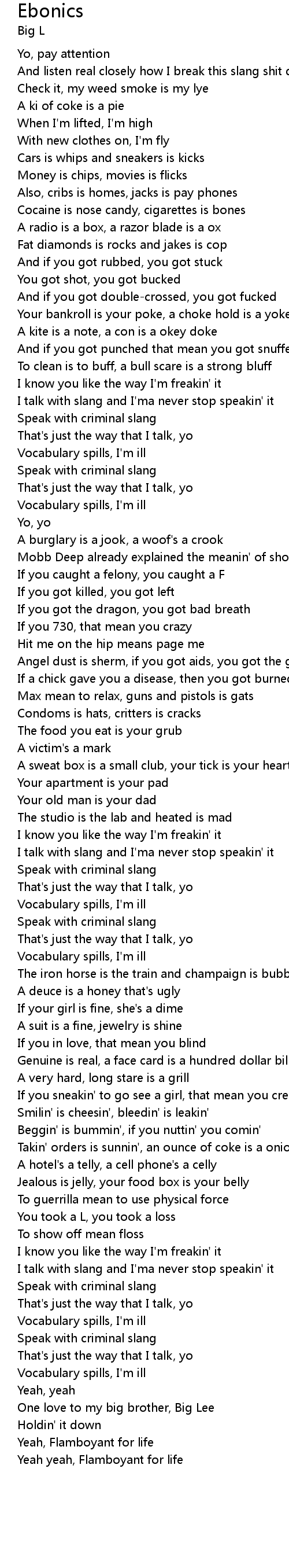 And listen real closely how I break this slang shit down |