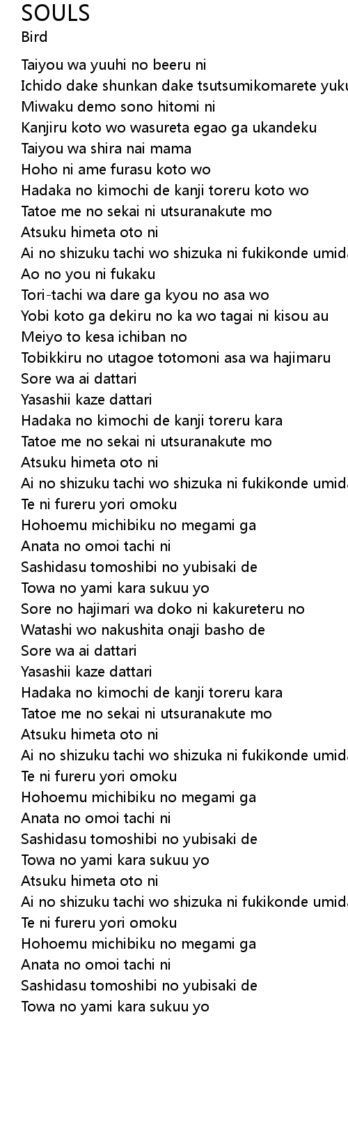 | Ai no shizuku tachi wo shizuka ni fukikonde umidasu | |