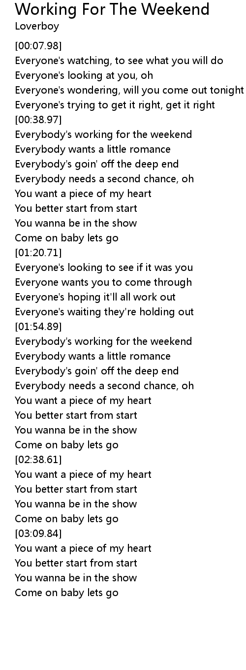 Working For The Weekend Lyrics