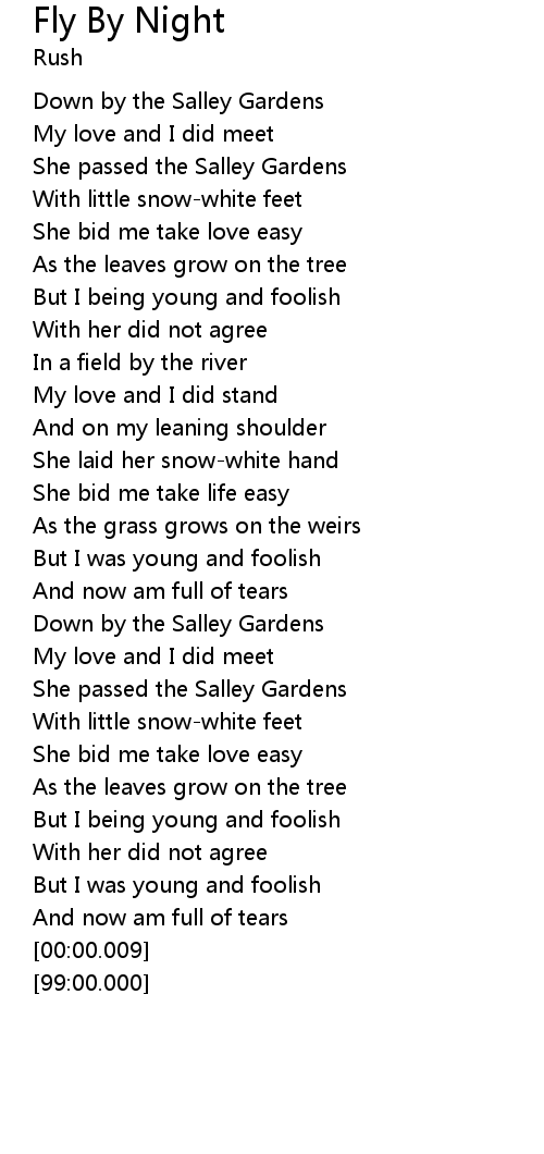 | [03:06.78] | She passed the Salley Gardens |