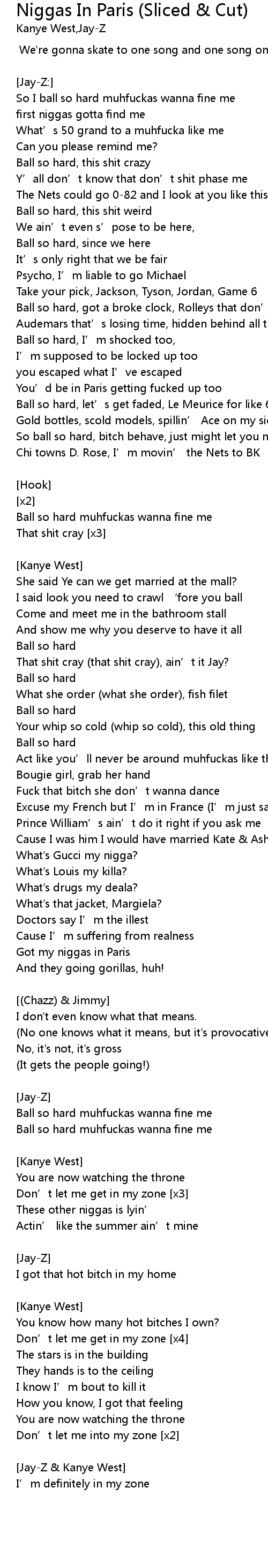 | Song | Niggas In Paris (Sliced & Cut) |