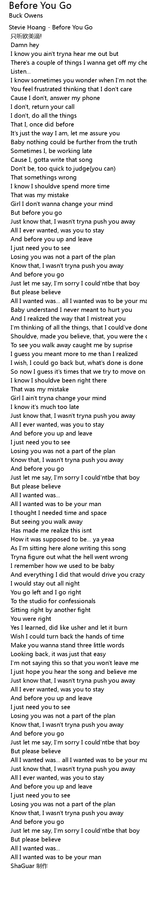 | Stevie Hoang - Before You Go | |
