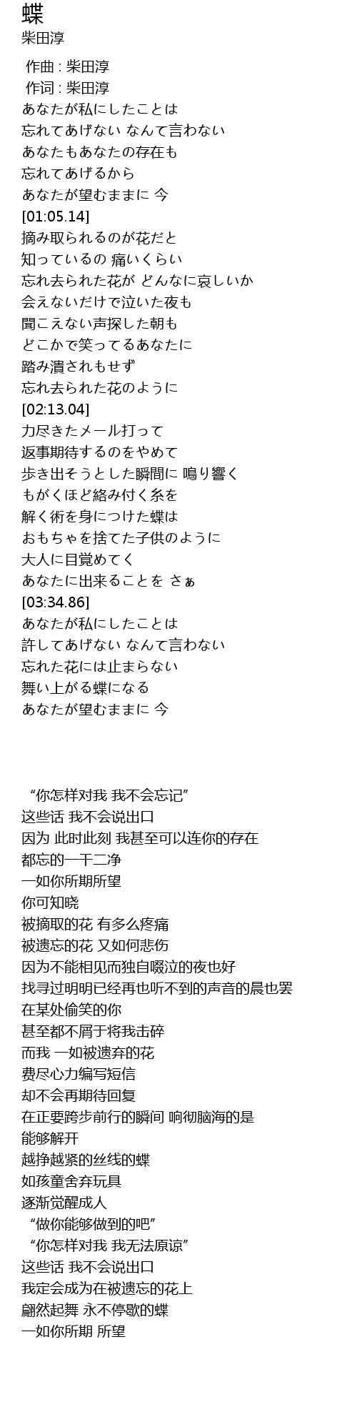 | [00:33.04] | 忘れてあげない なんて言わない |