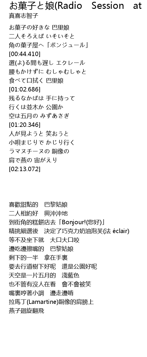 | [00:26.543] | お菓子の好きな 巴里娘 |