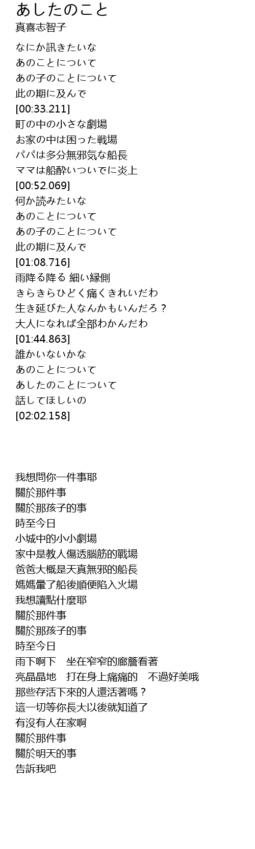 | [01:31.853] | きらきらひどく痛くきれいだわ |