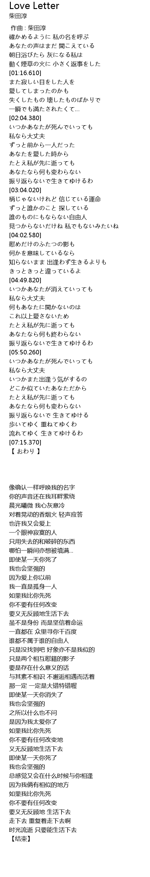 | [00:00.00] | 作曲 : 柴田淳 |