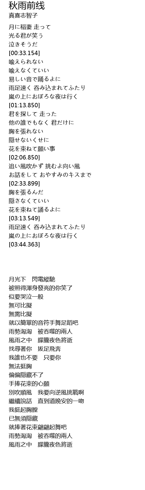 | [03:13.690] | 雨足速く 呑み込まれてふたり |
