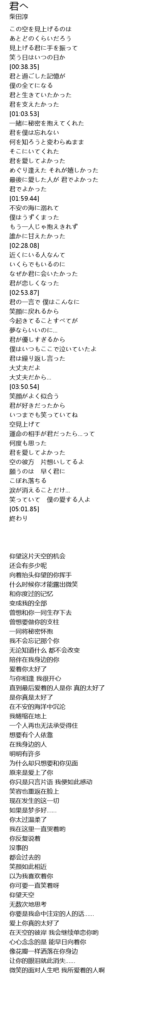 | [04:50.28] | 笑っていて 僕の愛する人よ |