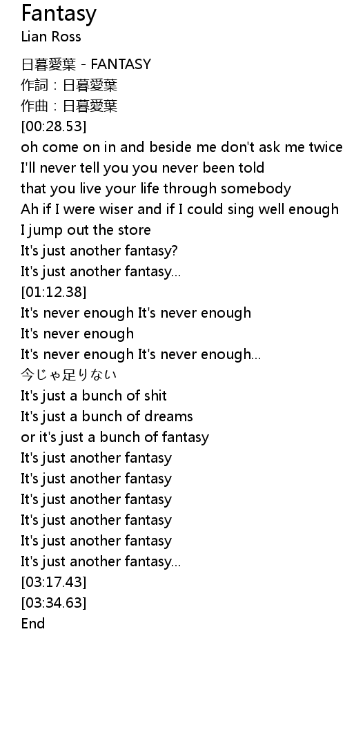 | [03:01.70] | It's just another fantasy |