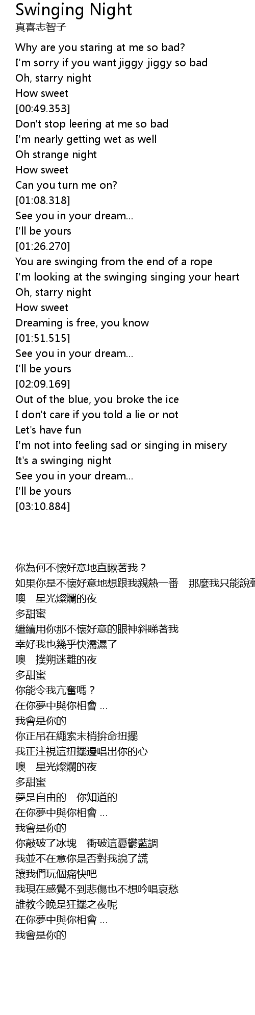 | [01:37.322] | I'm looking at the swinging singing your heart |