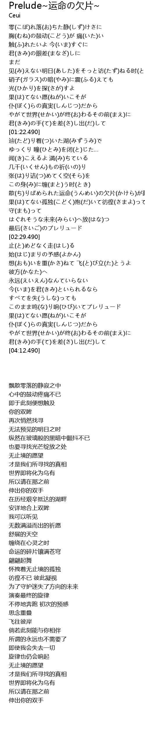 | [03:43.490] | すべてを失(うしな)っても このまま鸣(な)り响(ひび)いてプレリュード |