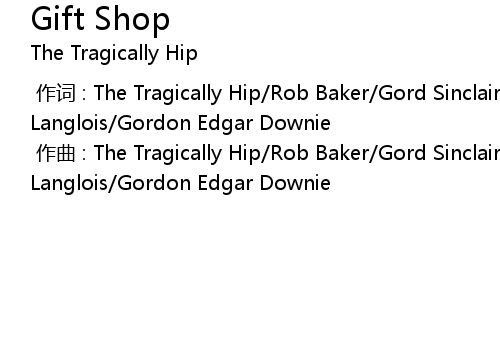 | [00:00.000] | zuo qu : The Tragically Hip Rob Baker Gord Sinclair Johnny Fay Paul Langlois Gordon Edgar Downie |