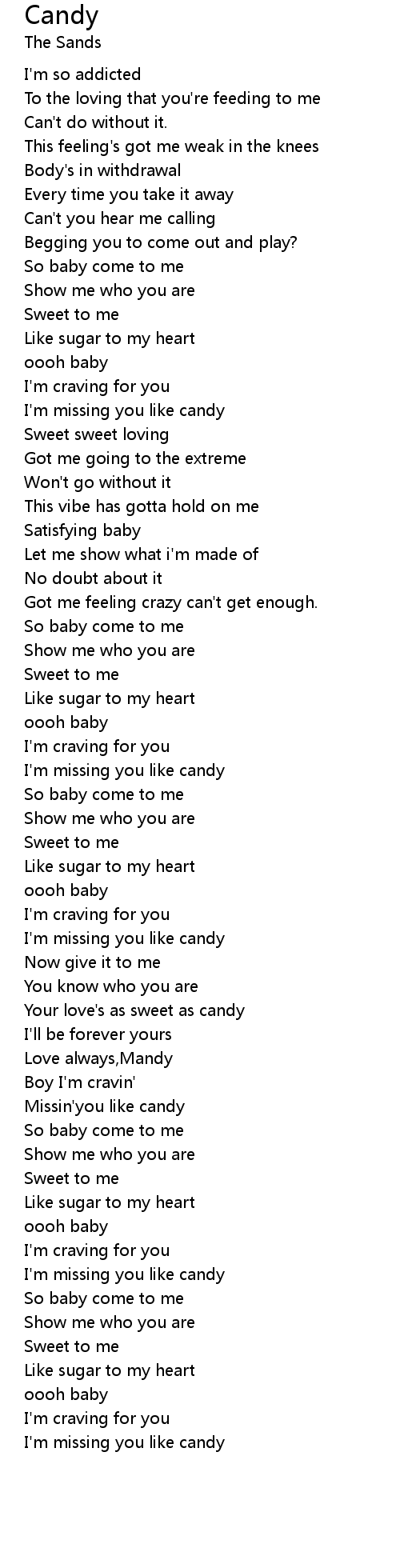 I'm missing you like candy |