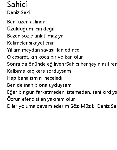 | Diler yoluma devam ederim Söz-Müzik: Deniz Seki |