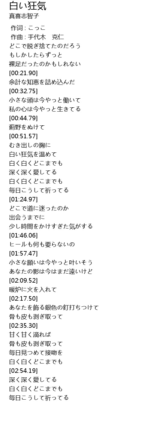 | [02:23.03] | あなたを飾る銀色の釘打ちつけて |