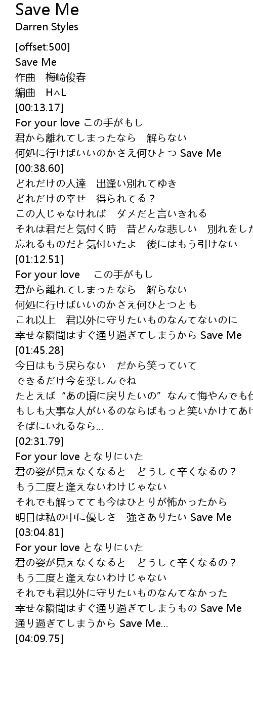 | [04:04.02] | 通り過ぎてしまうから Save Me... |
