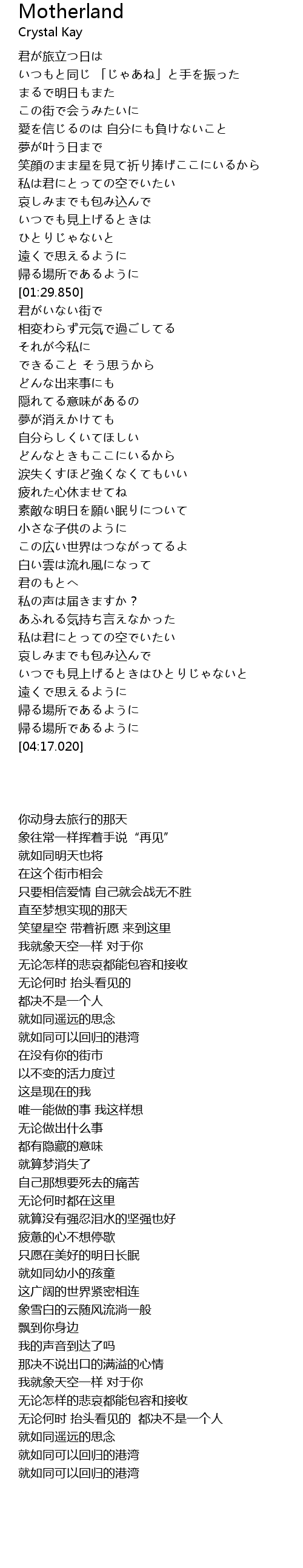 | [04:00.380] | 帰る場所であるように |
