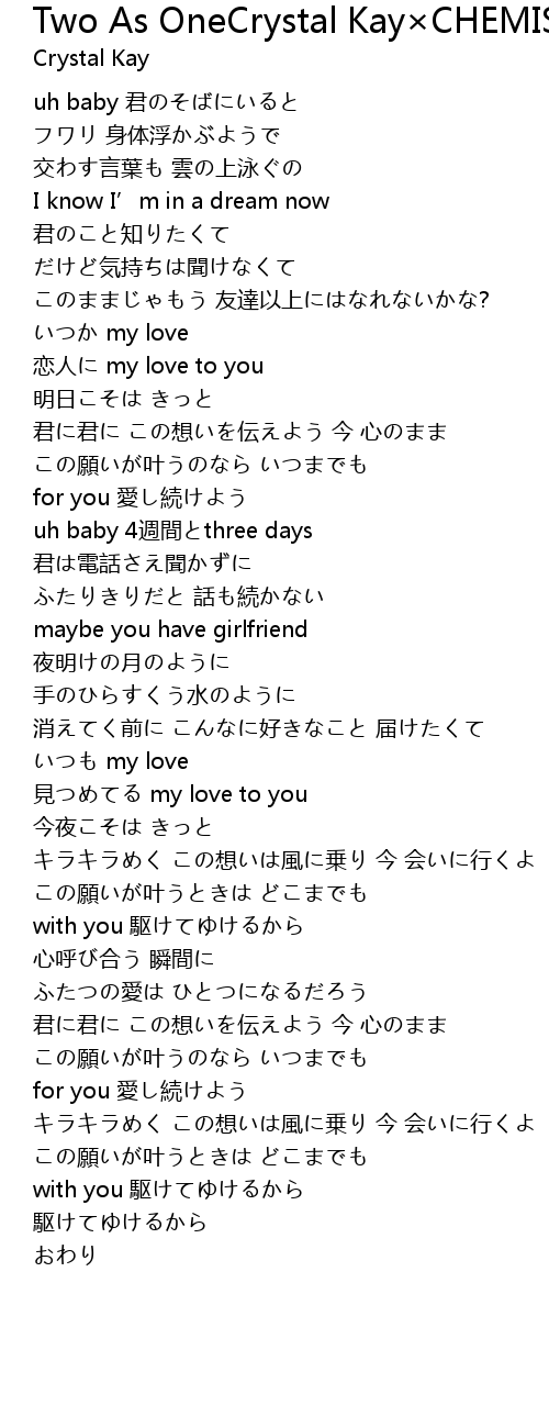 | Song | Two As OneCrystal Kay×CHEMISTRY |