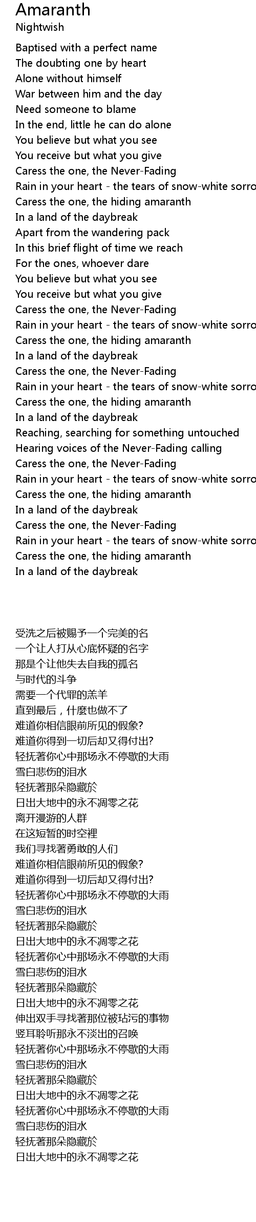 | [03:23.000] | Caress the one, the hiding amaranth |