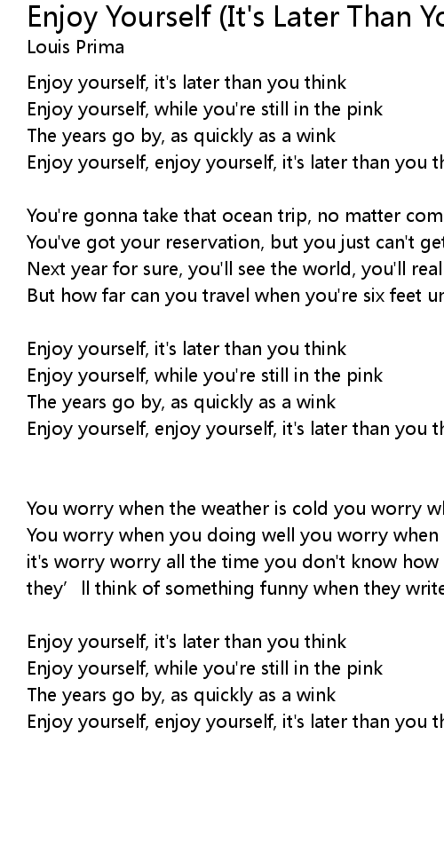 | Enjoy yourself, enjoy yourself, it' s later than you think |