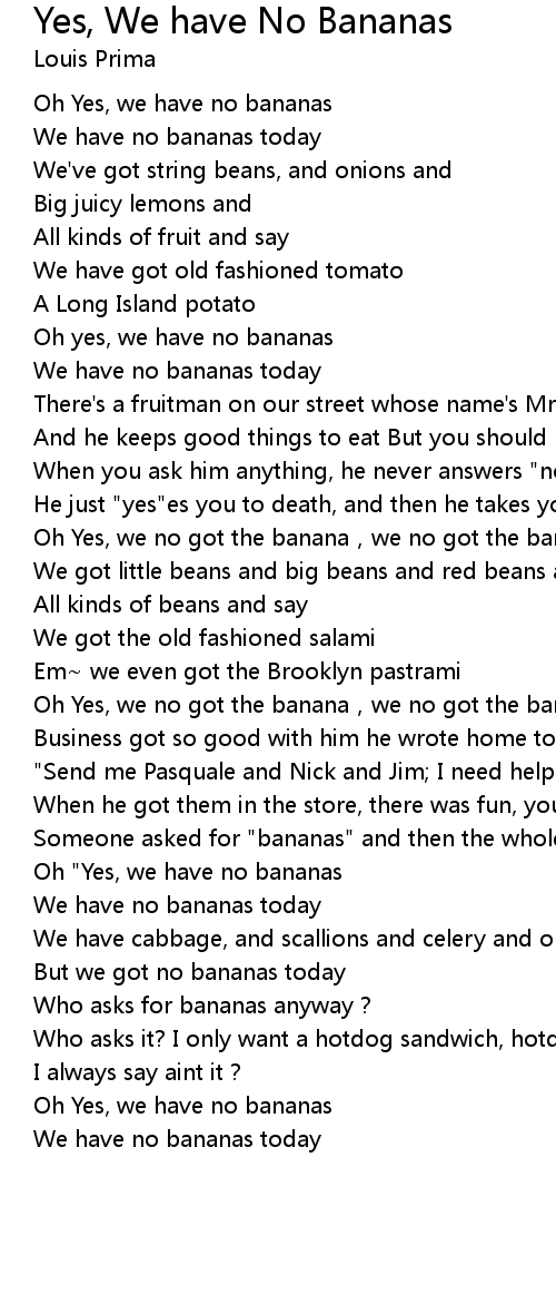 | Song | Yes, We have No Bananas |