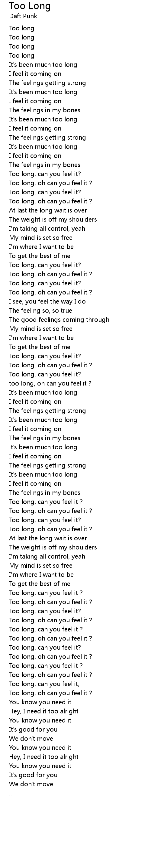 Too Long Lyrics