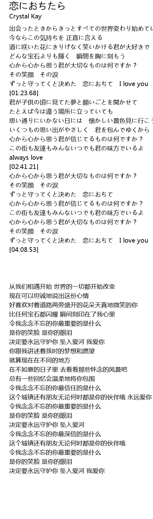 | [03:52.25] | ずっと守ってくと決めた 恋におちて I love you |