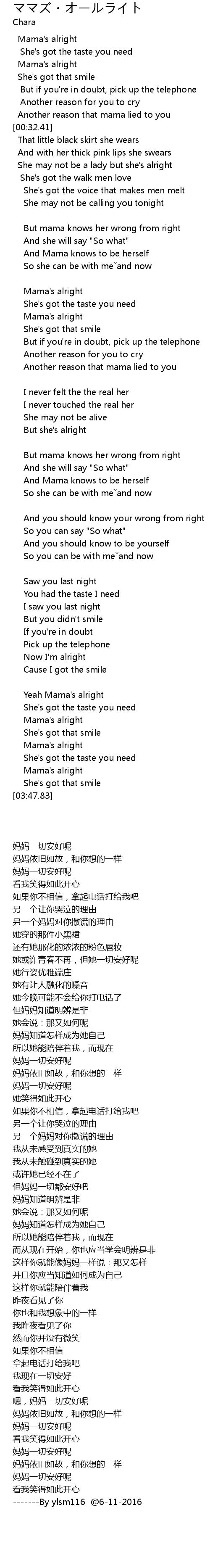 | [03:37.46] | Mama's alright |