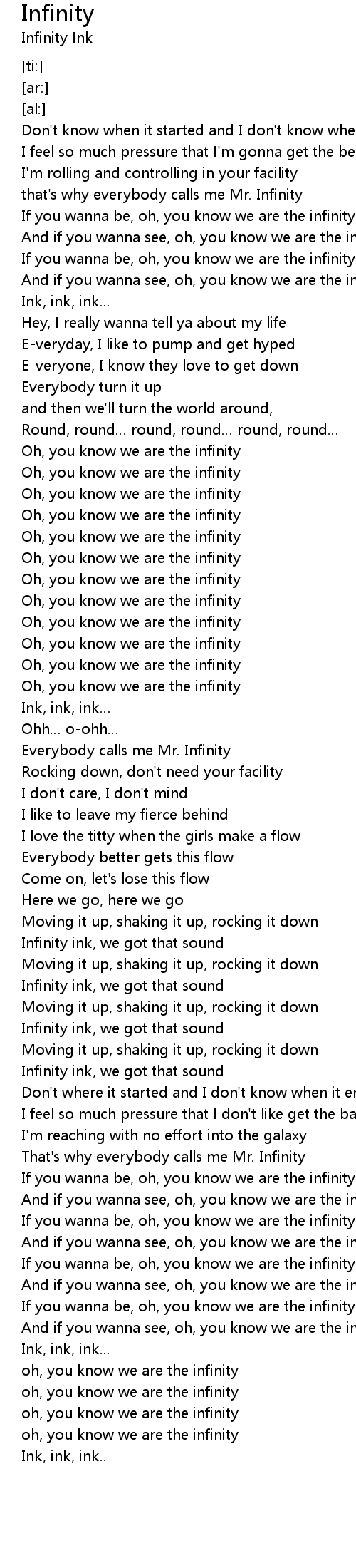 | [03:05.92] | Everybody calls me Mr. Infinity |