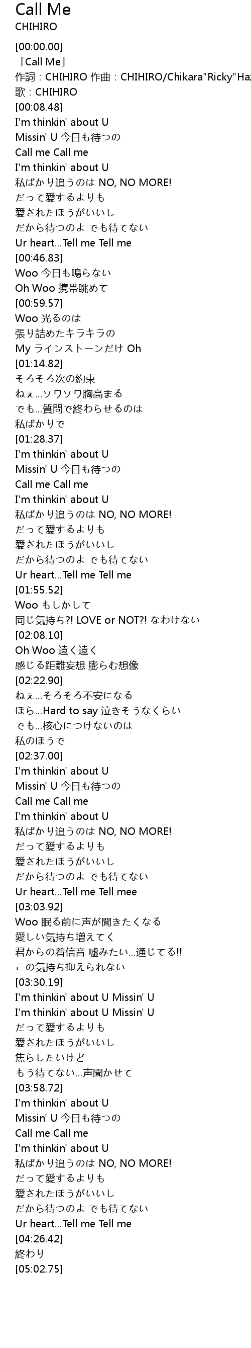 | [04:03.30] | Call me Call me |