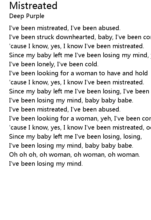 'cause I know, yes, I know I've been mistreated, ooh o-o-oh. |