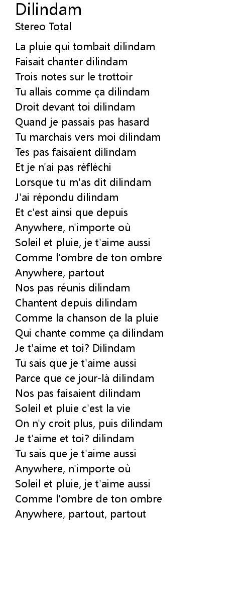 | Lorsque tu m' as dit dilindam | |