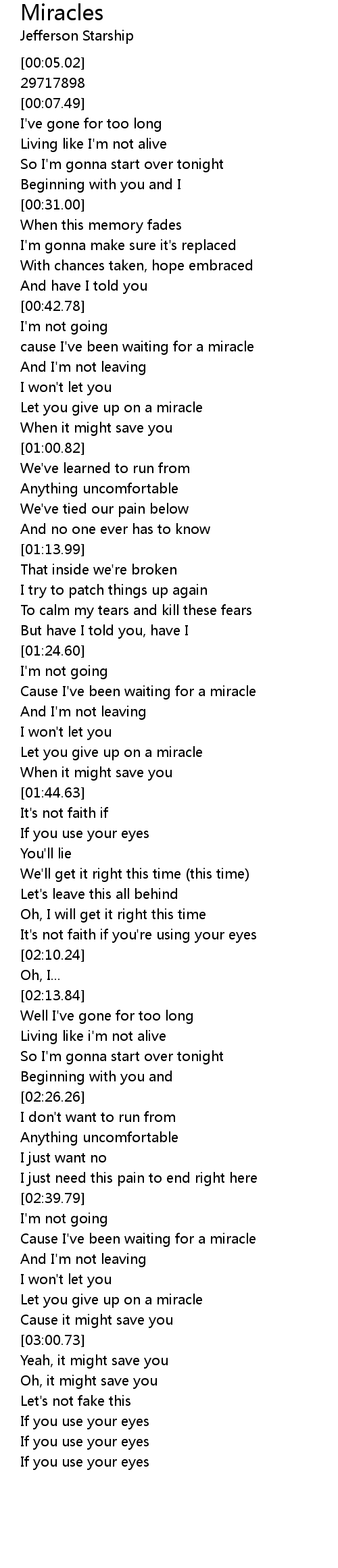 Cause I've been waiting for a miracle |