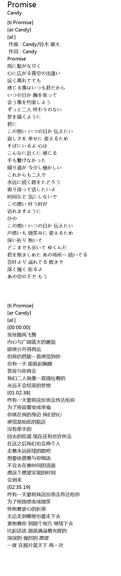| [00:00.00] | zuò cí : Candy |