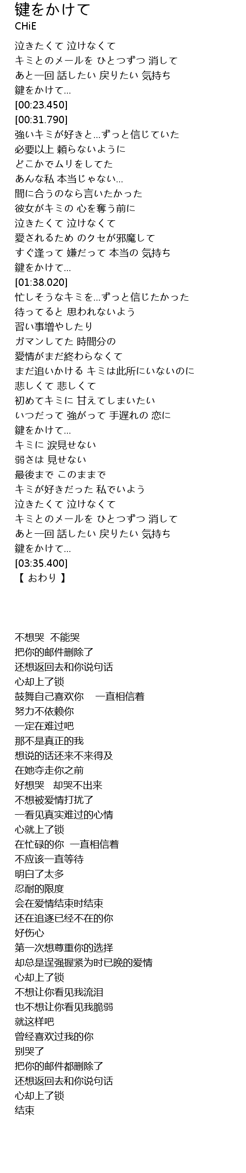 | [02:48.050] | 鍵をかけて... |