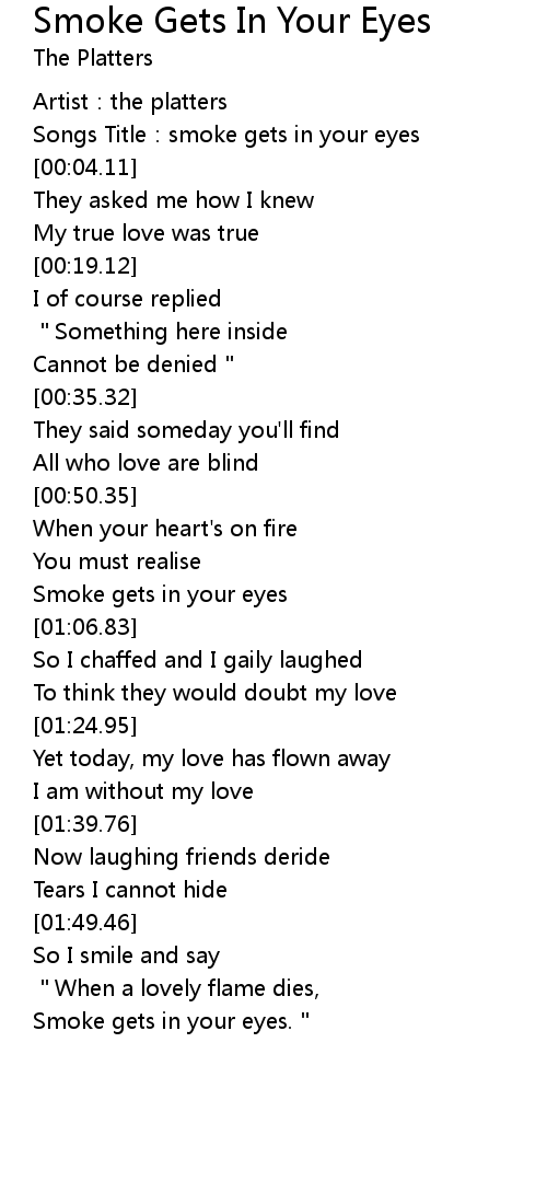| [00:01.79] | Songs Title: smoke gets in your eyes |