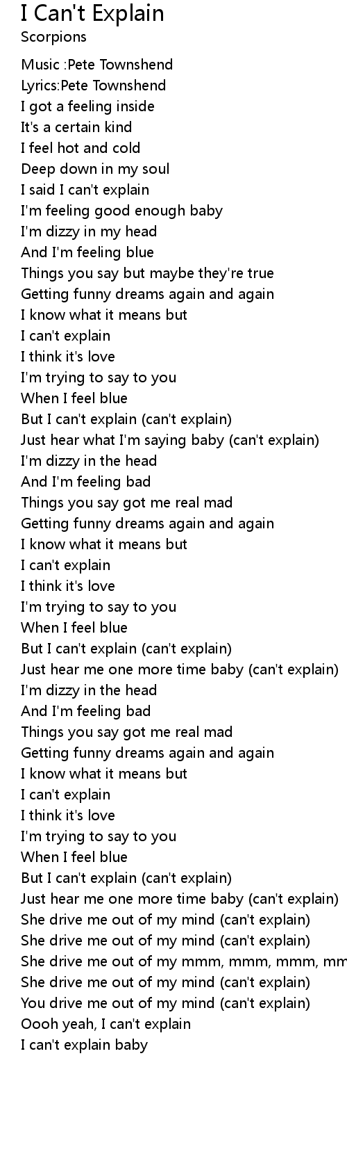 I Can't Explain Lyrics