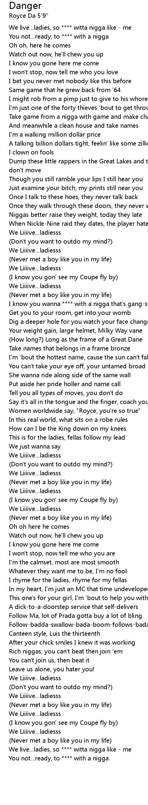 You not...ready, to **** with a nigga |