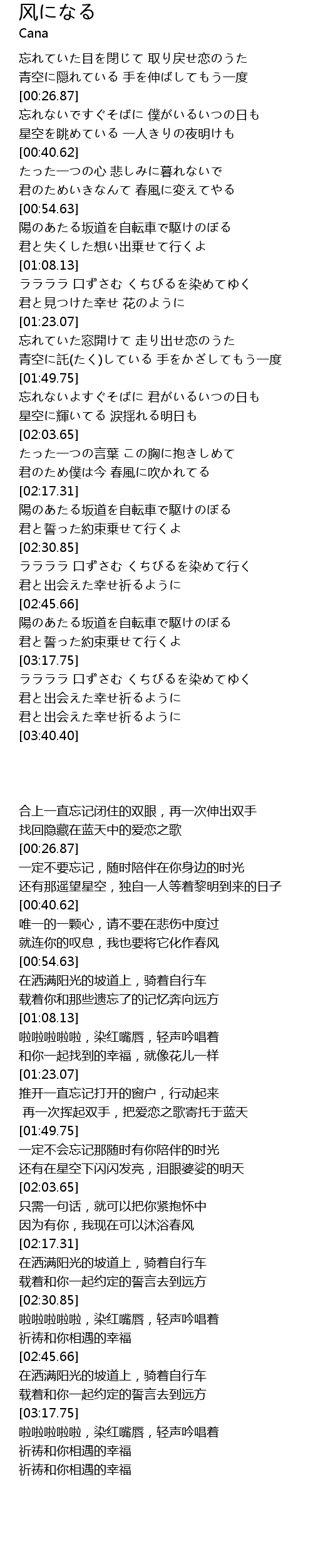 | [02:10.53] | 君のため僕は今 春風に吹かれてる |