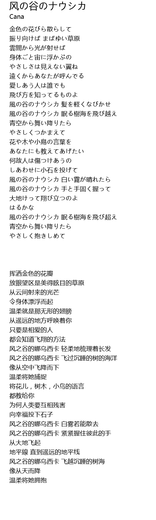 | [02:59.260] | 風の谷のナウシカ 眠る樹海を飛び超え |