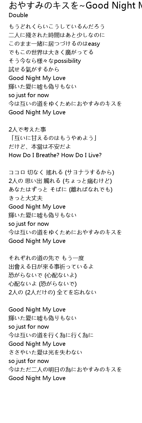 | 今は互いの道をゆくためにおやすみのキスを | |