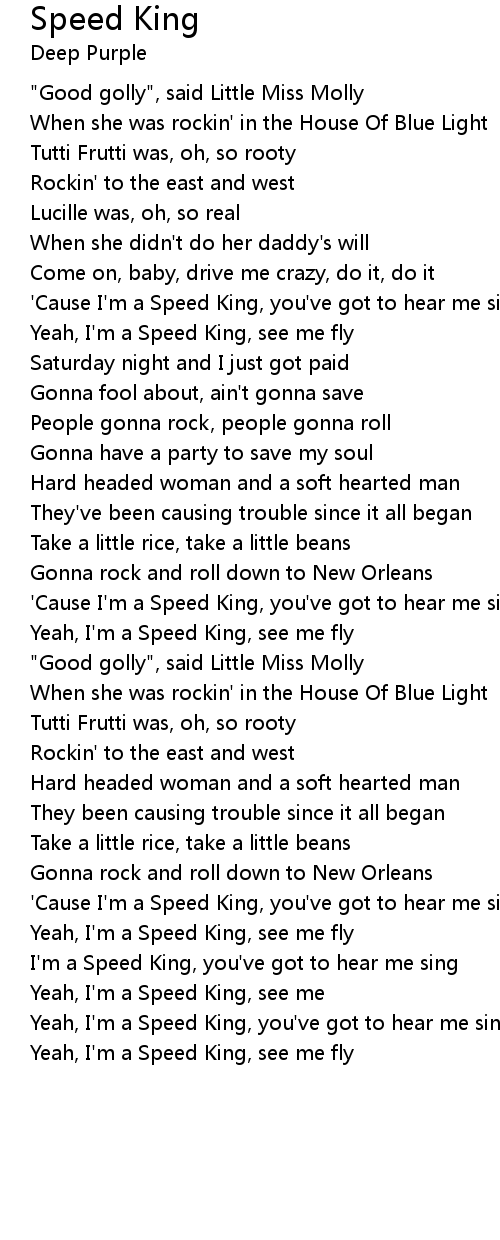 'Cause I'm a Speed King, you've got to hear me sing |