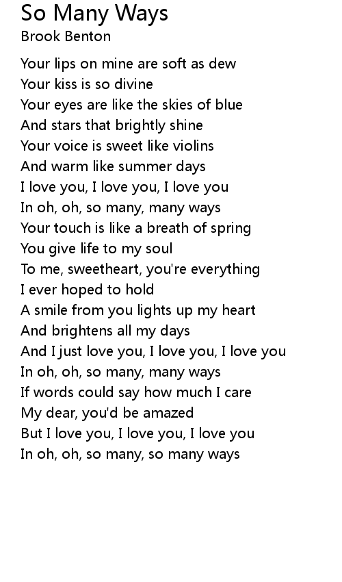 In oh, oh, so many, many ways |