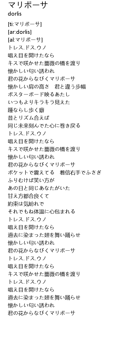 | [00:23.39] | 君の花からなびくマリポーサ |