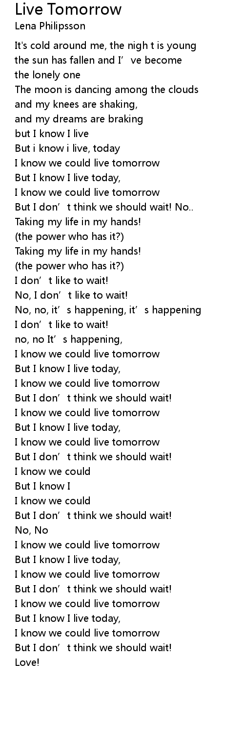 | I know we could live tomorrow | |