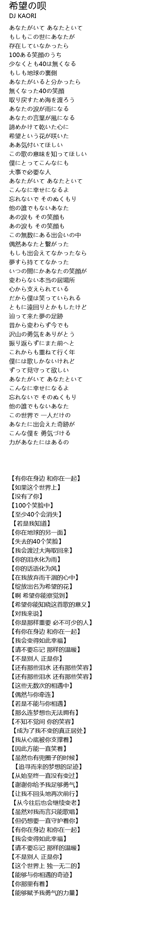 | [00:40.73] | この歌の意味を知ってほしい |